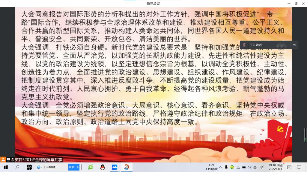 (通讯员 杨吉)3月2日至3日,太阳集团122cc各班组织开展学习“习近平总书记在中央人大工作会议上的讲话”线上主题团课,此次团课由各班团支书主持。