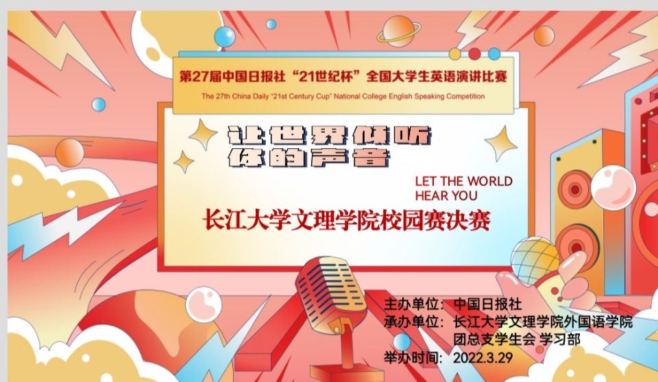 (通讯员 高业萌)为全面培养青年语言表达能力以及综合素养,切实提高中国青年员工跨文化交流能力,3月29日,由中国日报社主办,太阳集团122cc团总支员工会学习部承办的“21世纪”全国老员工英语演讲比赛校园赛圆满结束。
