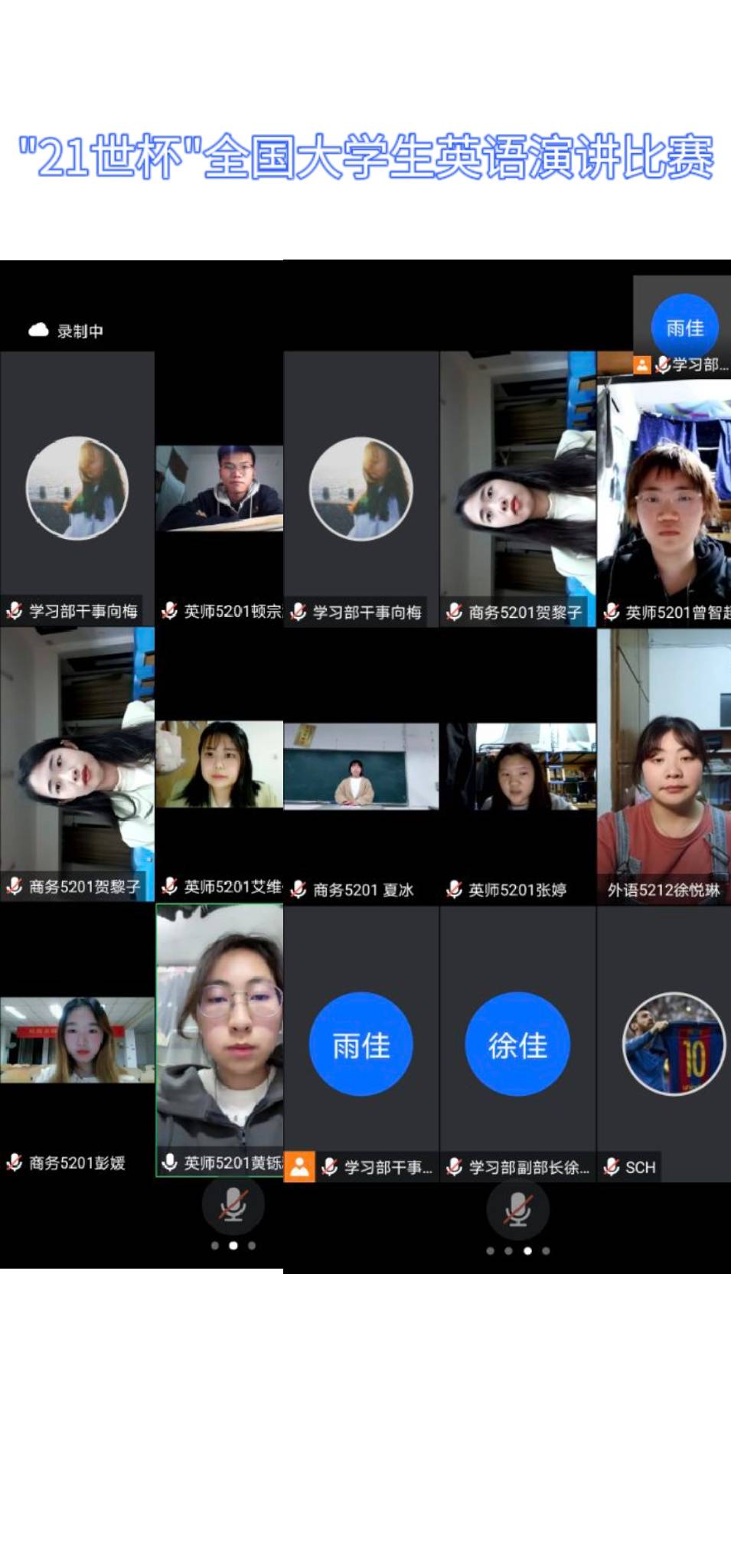 本次复赛严格遵守防疫规定,全程线上举行。参赛选手演讲前20分钟收到随机演讲主题,并脱稿进行即兴演讲。经过评委老师公平公正的评审,最后荆艺佳、徐悦琳2名同学成功晋级。