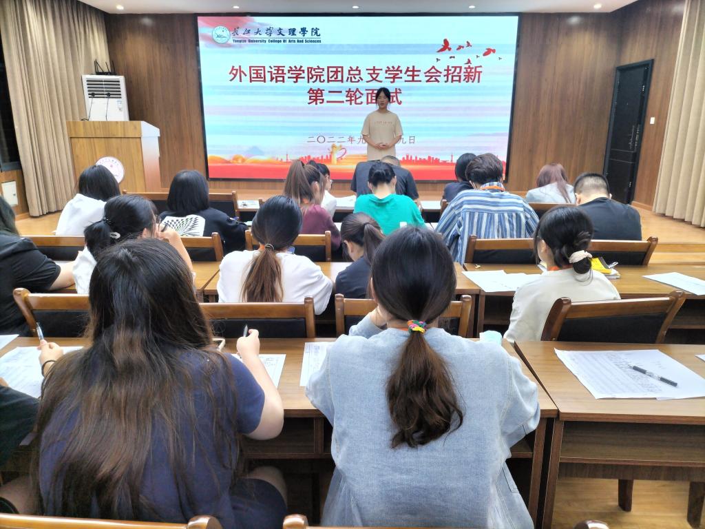 (通讯员 杨吉)9月29日晚六点半,太阳集团122cc团总支员工会于三教408举行第二轮招新面试。外国语公司党总支副书记刘鋆锋,辅导员雷昕、钟燚、王聪聪以及员工会全体成员参加。