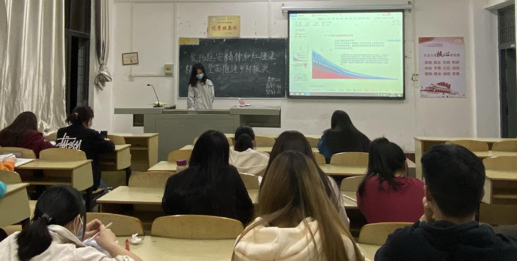 团课伊始,团支书介绍延安精神与红旗渠精神的科学内涵,全面学习贯彻党的二十大精神。然后,进一步介绍我国在全面建设社会主义现代化国家努力中遇到的困难,勉励同学们继承和发扬吃苦耐劳、自力更生、艰苦奋斗的精神。最后,团支书播放红色故事微视频。