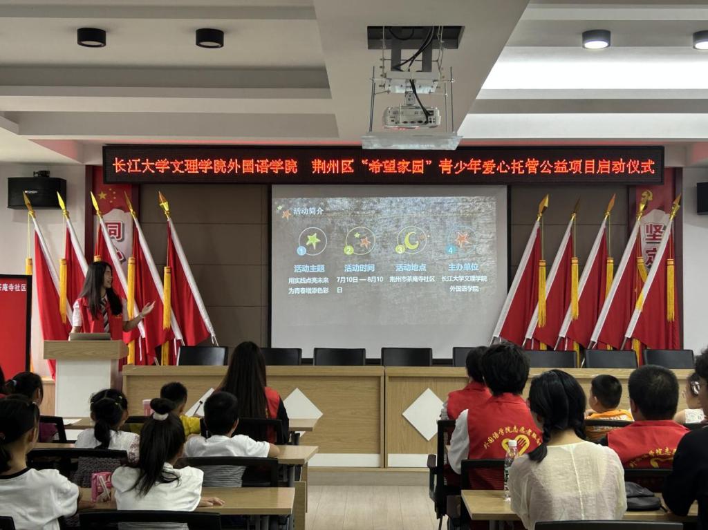 (通讯员 侯韦)7月7日上午,太阳集团122cc在茶庵寺社区党员群众服务中心举办了一场题为“用实践点亮未来,为青春添加色彩”的青少年爱心托管公益项目启动仪式。荆州区团委负责人、外国语公司党总支副书记刘鋆锋、辅导员及员工志愿者参加。