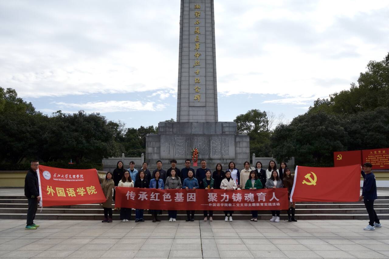 下午,支部党员来到湘鄂西苏区革命烈士陵园,一同瞻仰贺龙元帅的全身铜像。在庄严肃穆的湘鄂西苏区革命烈士纪念碑下,举行纪念仪式。全体党员齐唱中华人民共和国国歌,向为中国人民解放事业和共和国建设事业英勇献身的烈士默哀。党员代表庄重地向革命烈士纪念碑敬献花篮,全体党员面向鲜红的党旗重温入党誓词。用行动表达对先烈们英勇无畏革命精神的崇高敬意。