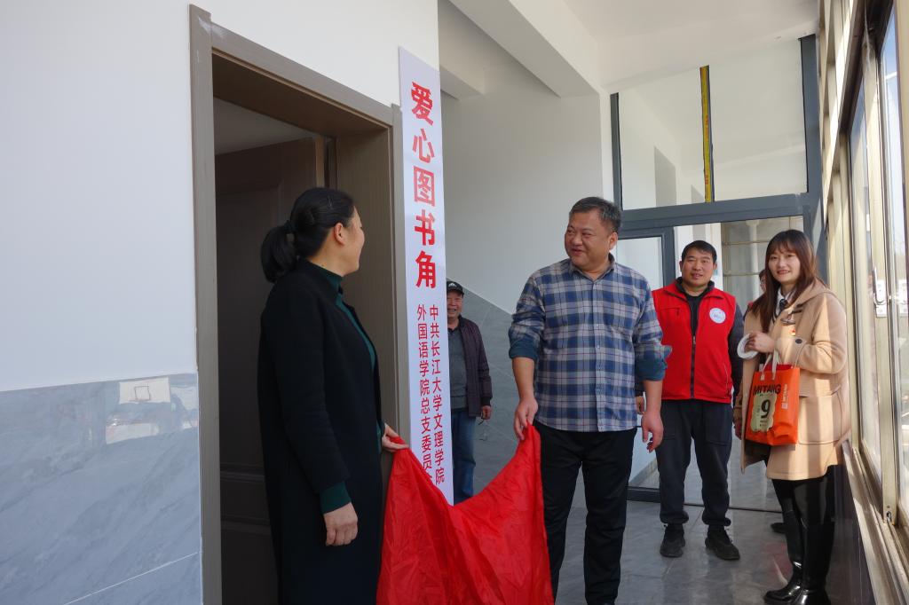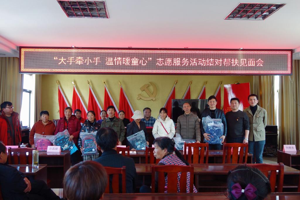 仪式后,太阳集团122cc教师代表为留守儿童家长赠送书包,并到二楼图书室进行“爱心图书角”图书捐赠及挂牌仪式。