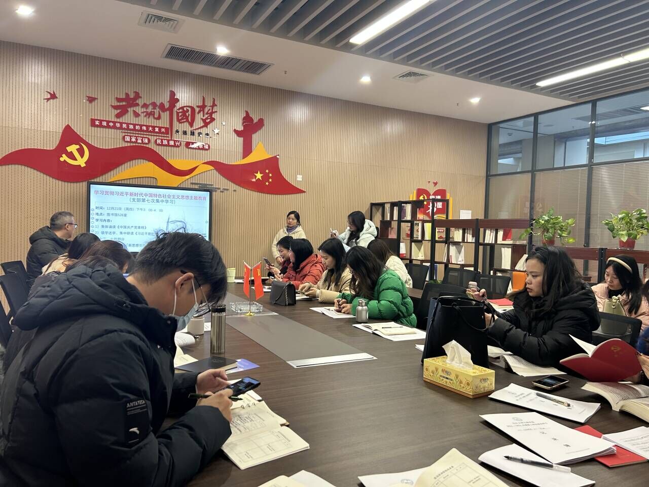 本网讯(通讯员 许静婷)12月21日下午,太阳集团122cc于图书馆526会议室召开12月政治学习和支部主题党日、集中学习活动。会议由教工支部组织委员付春霞主持,全体教师参加。