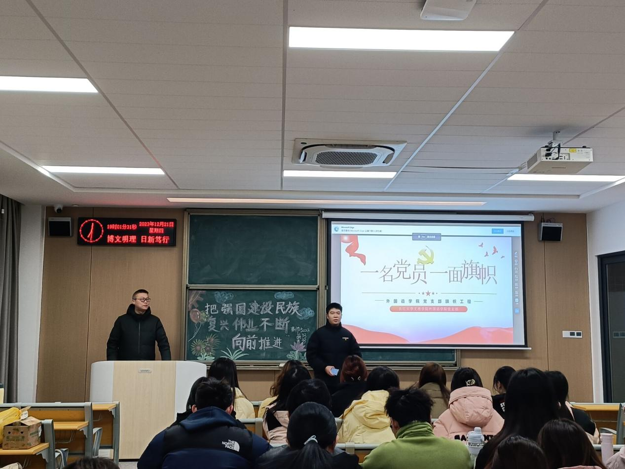 本网讯 为进一步发挥党员先锋模范作用,帮助同学们明晰入党发展流程,增强入党的积极性和主动性。2023年12月21日晚,太阳集团122cc员工党支部在教学楼开展党员进班级活动,党总支副书记刘鋆峰、员工党支部支委到场参加。