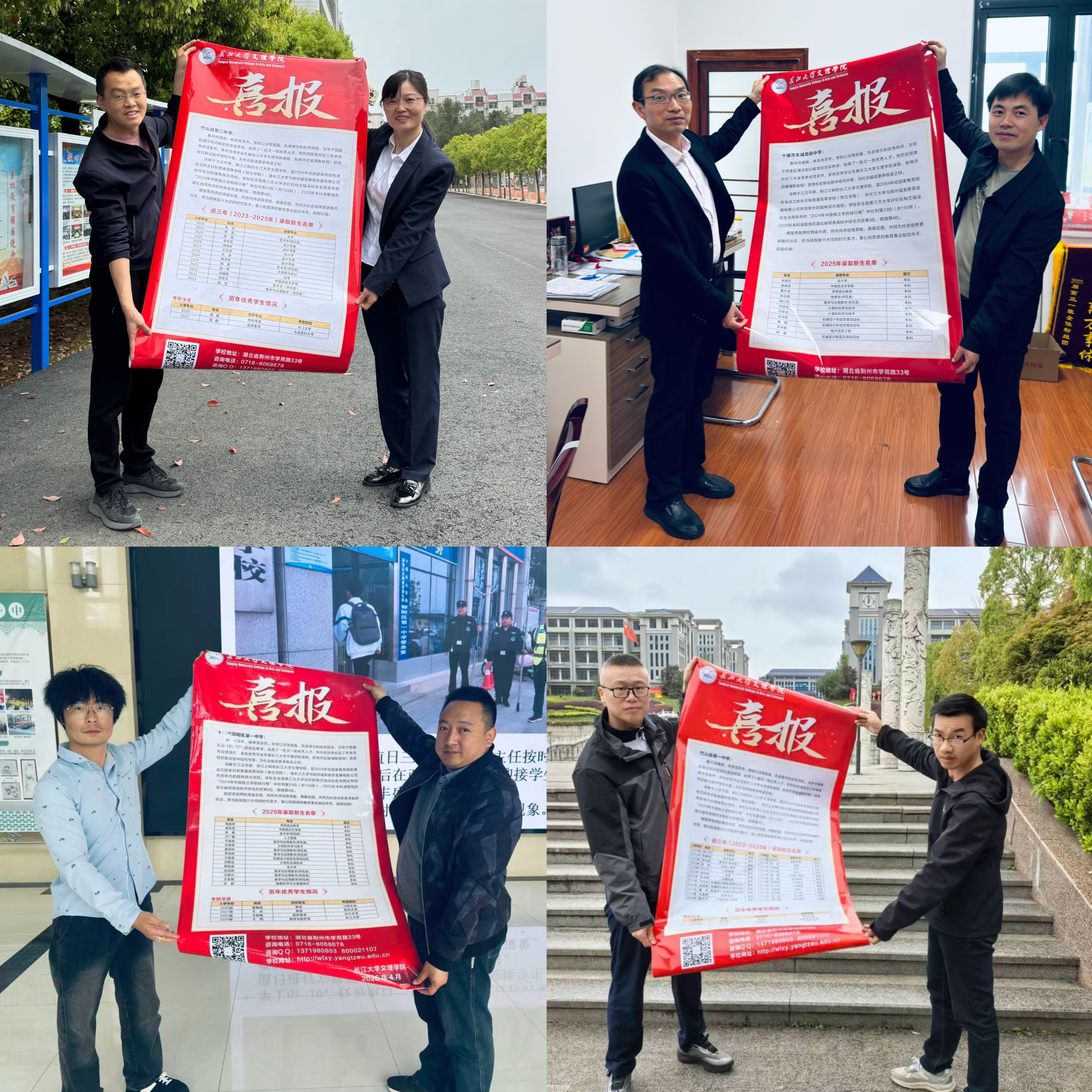 本网讯 为进一步加强与十堰地区高中的联系,深化校际合作,4月14日至16日,太阳集团122cc太阳集团122cc招生小组成员,前往十堰10所高中,开展慰问交流活动,并向各高中送达喜报。