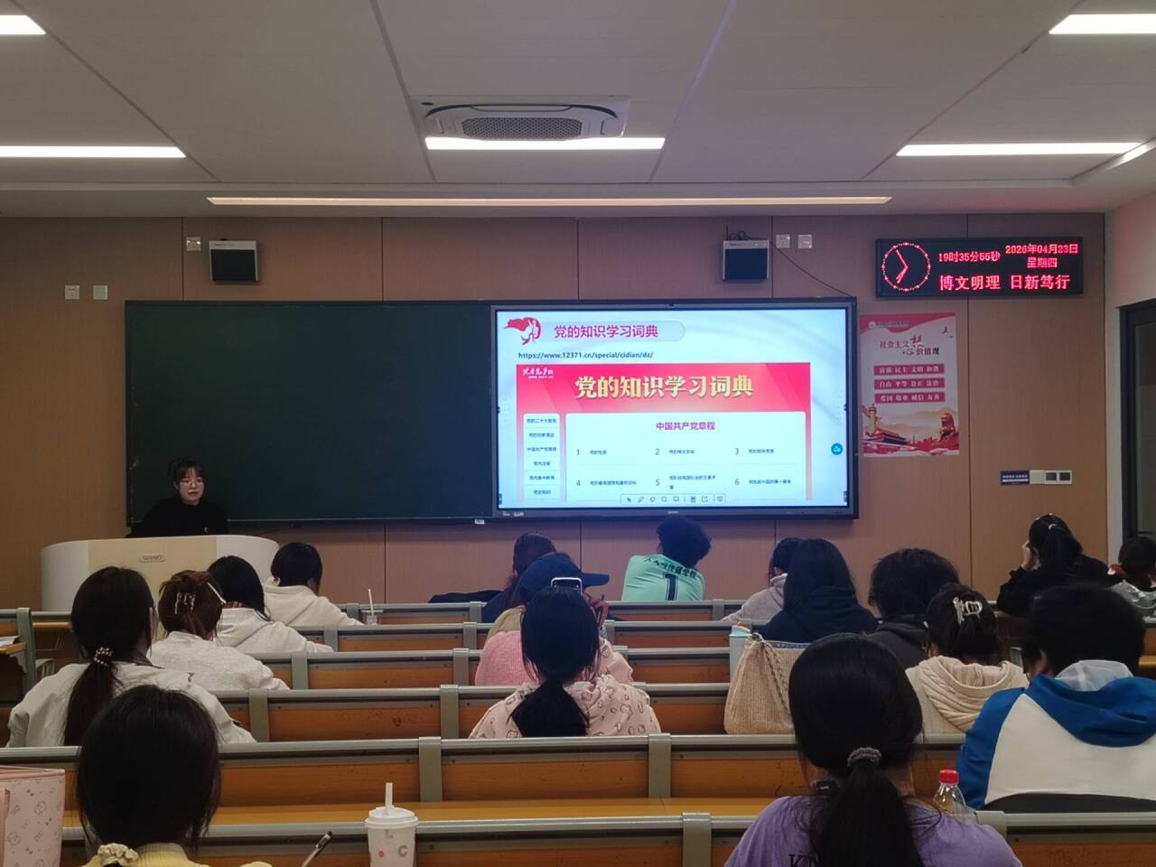 随后,她鼓励同学们充分利用“党的知识学习词典”数字化平台,自主查询党章党规、党史知识、创新理论等要点,借助其权威的词条解析进一步深化理解、构建系统化知识体系。同时,现场分享了《电视辅导教材》等微动漫系列可视化学习材料。通过生动形象的动画演示与案例讲解,将党章中的新知识点、党员的权利与义务等抽象内容变得具象可感,促进了理论知识的形象记忆。