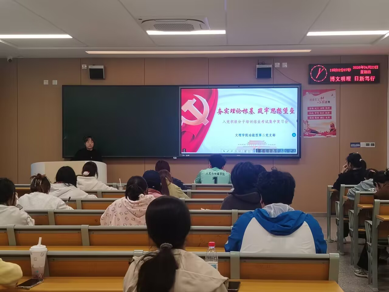 复习会首先进行模拟考试,试题紧扣前期培训重点,全面考查同学们对党的基本理论、路线、方针、政策的掌握情况。测试结束后,许静婷老师逐题精讲,帮助同学们精准定位知识盲点,提升复习的针对性与实效性。