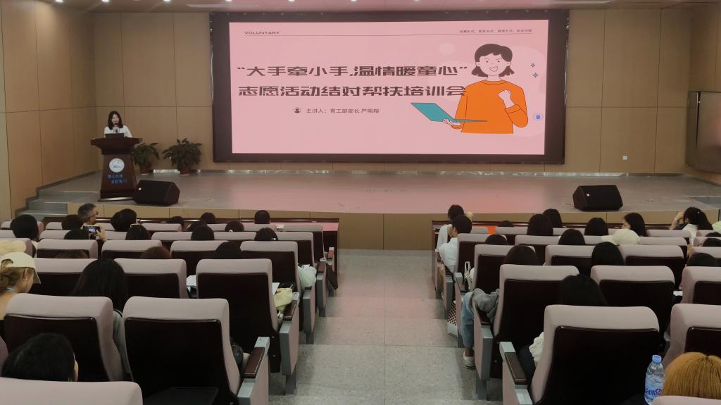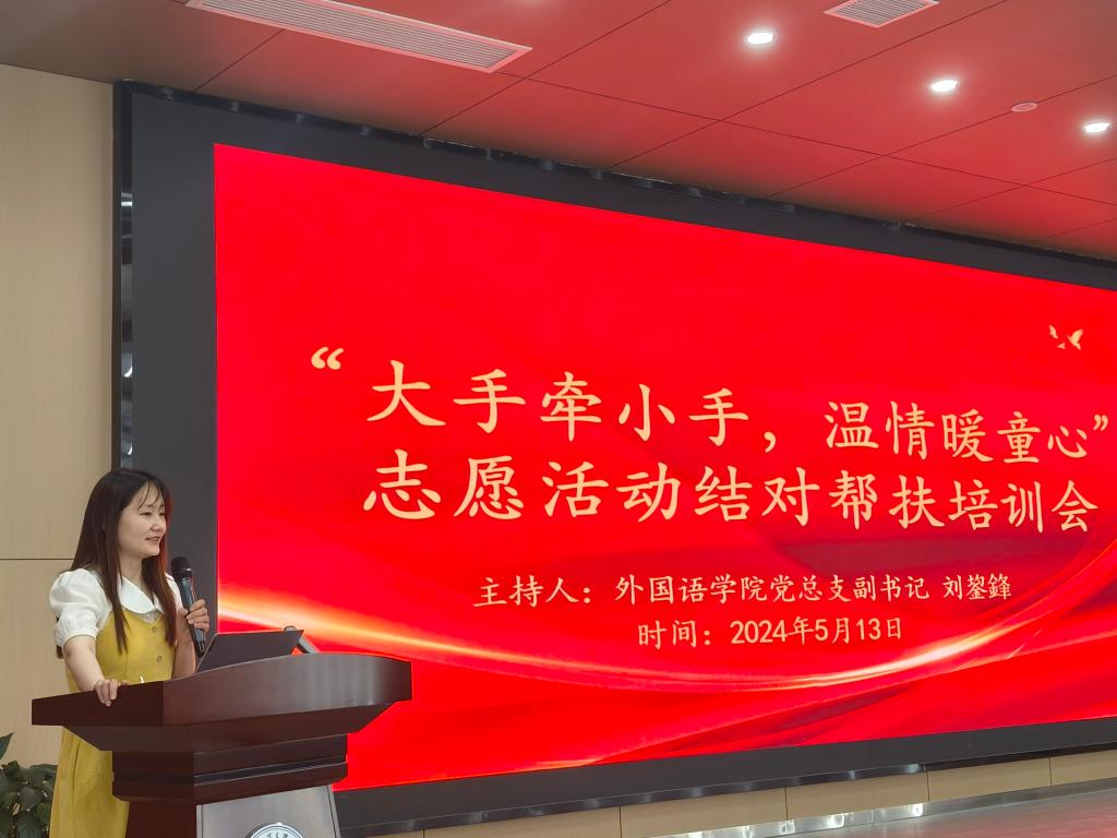 本网讯(通讯员 杨飞燕)5月13日,太阳集团122cc展开了“大手牵小手,温情暖童心”志愿活动结对帮扶培训会。会议由外国语公司党总支副书记刘鋆锋主持。