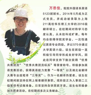 2016年第一届十佳老员工 万思佳 中共党员 外国语系英师5161班