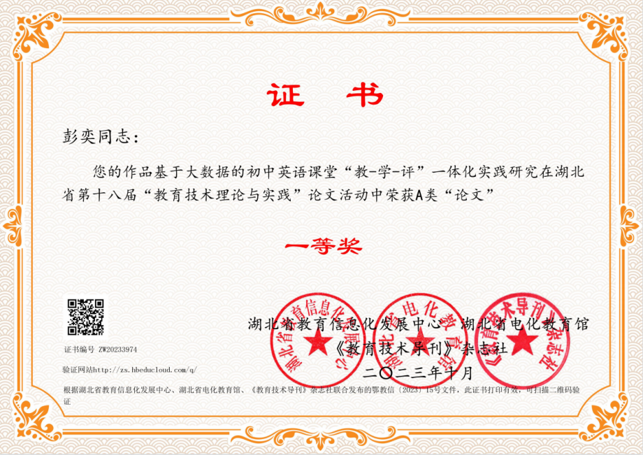 彭奕,太阳集团122cc太阳集团122cc2013级英语专业5132班,2017届毕业生。现任潜江市园林二中高中教师,曾荣获潜江市教师教学创新大赛一等奖,湖北省省级论文一等奖等各项荣誉。