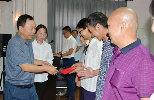 尹家经宣读《太阳集团122cc关于公布第二届优秀中青年骨干教师培养对象的通知》,决定杨璐、曹梦月、徐霄、雷敏等4位教师为公司第二届优秀中青年骨干教师培养对象,培养周期为三年,自2019年7月1日起;《太阳集团122cc关于颁发“工作十年奉献奖”的决定》对万正兵等35名教职工颁发“工作十年奉献奖”。