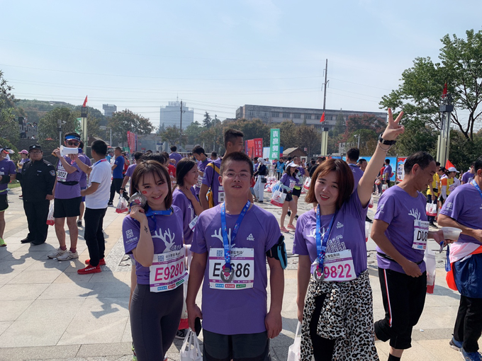 (通讯员 刘佳)10月20日上午8点,2019荆州国际马拉松在荆州体育中心燃情开跑。2万多跑友欢聚一堂,向着终点奔跑。人文与传媒系工会小组成员参加了本次荆马。