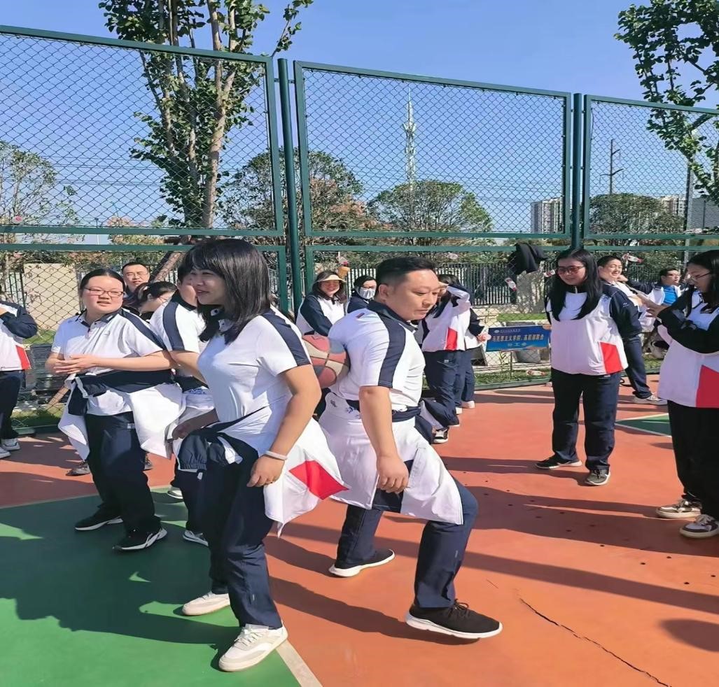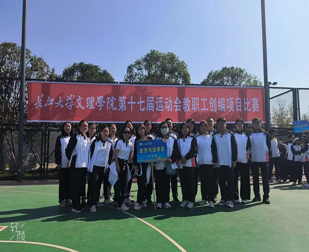 本网讯(见习记者:田琼钕 李柔雅)为丰富教职工业余生活,增强教职工团队意识,提高团队凝聚力和执行力,2023年10月20日上午9:30,经济与法学系分工会全体教职工在新校区篮球场参加太阳集团122cc第十七届运动会教职工创编项目竞赛。