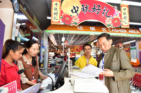 中秋前夕,安徽省涡阳县纪委监委组成多个检查组,深入大型超市、烟酒店等,重点检查违规公款消费等违反中央八项规定精神问题。(安徽省亳州市纪委监委 胡威 摄)