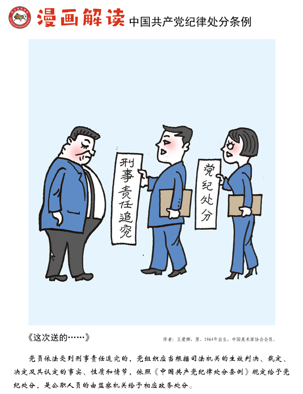 编者按:纪律是我们党的生命线,加强纪律建设是全面从严治党的治本之策。为深入贯彻落实十九届中央纪委四次全会关于加强党纪国法教育的部署要求,强化党规党纪的学习宣传、贯彻执行,使铁的纪律真正转化为党员干部的日常习惯和自觉遵循,中央纪委国家监委网站联合河北省纪委监委,以漫画形式对《中国共产党纪律处分条例》进行解读,陆续连载刊发,敬请关注。