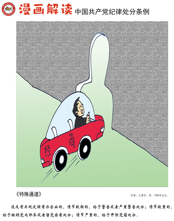 编者按:纪律是我们党的生命线,加强纪律建设是全面从严治党的治本之策。为深入贯彻落实十九届中央纪委四次全会关于加强党纪国法教育的部署要求,强化党规党纪的学习宣传、贯彻执行,使铁的纪律真正转化为党员干部的日常习惯和自觉遵循,中央纪委国家监委网站联合河北省纪委监委,以漫画形式对《中国共产党纪律处分条例》进行解读,陆续连载刊发,敬请关注。