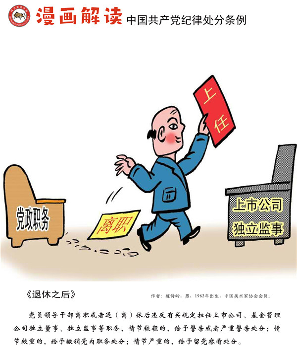 编者按:纪律是我们党的生命线,加强纪律建设是全面从严治党的治本之策。为深入贯彻落实十九届中央纪委四次全会关于加强党纪国法教育的部署要求,强化党规党纪的学习宣传、贯彻执行,使铁的纪律真正转化为党员干部的日常习惯和自觉遵循,中央纪委国家监委网站联合河北省纪委监委,以漫画形式对《中国共产党纪律处分条例》进行解读,陆续连载刊发,敬请关注。