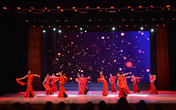 晚会以“梦想中国·奋进文理”为主题,由16个节目组成,包括合唱、歌曲串烧、情景朗诵、舞蹈等节目形式。开场舞《跳跳糖》拉开晚会序幕,铿锵的鼓点、欢快的旋律,将现场观众带入喜庆祥和的新年氛围中。舞蹈《芒种》表现出教育工作者在育人路上辛勤耕耘、追求幸福的主题;小合唱《泉水叮咚》、舞蹈《书简舞》、歌伴舞《最美的花季》《明天,你好》、情景朗诵《美丽中国》、歌曲串烧《让我们来跳舞》等,展现出文理人拼搏奋进、追逐梦想的精神风貌,抒发了师生奋进新时代、拥抱中国梦的豪情壮志。晚会在歌伴舞《我爱你中国》中落下帷幕。
