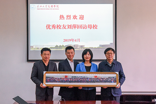 梅平对刘萍投身公益、追逐梦想的事迹和精神表示赞赏,希望她继续关心和支持母校的发展,常回家看看。