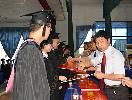 与会领导一同为受表彰的同学颁发毕业证书和荣誉证书。