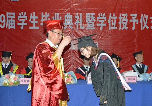 梅平为毕业生代表正冠拨穗