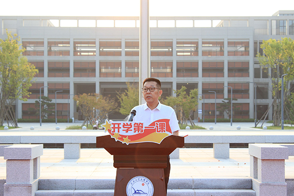 党委书记颜建洲以“厚植爱国情怀,砥砺强国之志”为题发表国旗下的讲话。他围绕“第33届夏季奥运会”这一话题展开,他指出,在奥运赛场上,中国体育健儿展现了顽强拼搏、自强不息的必胜信念,团结协作、并肩作战的精神品质。奥运会背后是国家和国家的较量和博弈。今天竞技体育复杂的竞争环境,就是中华民族伟大复兴面临的复杂形势的一个缩影。面对百年未有之大变局,我们只有团结一致,铸牢中华民族共同体意识,才能凝聚力量实现中华民族伟大复兴。