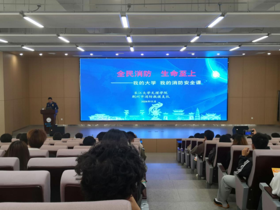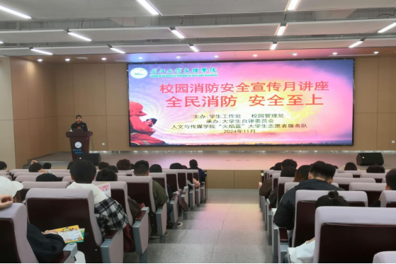 本网讯(通讯员 石梓炼)11月是全国消防安全宣传月,在深入推进校园消防安全教育,强化火灾防范及应急处理能力的大背景下,11月14日下午2点30分,主题为“全民消防,安全至上”的校园消防安全宣传月讲座在教学楼B-112报告厅举办。本次讲座由公司员工工作处与校园管理处联合荆州市消防救援支队共同举办。党委员工工作部副部长成观雄担任主持,出席人员包括荆州市消防救援支队新闻宣传科科长郭敏、员工工作处和校园管理处代表以及各班级员工干部代表。