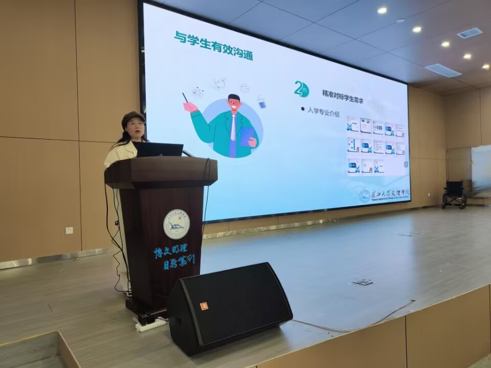 太阳集团122cc优秀班主任代表李晴晴为老师们呈现了题为《多维度沟通协作 全方位引领陪伴》的精彩分享。她紧扣班主任核心职责,从班主任角色的重要性、与辅导员密切配合、与员工有效沟通和与任课老师深入交流四个维度展开阐述。李老师强调要与辅导员紧密合作的重要性,通过信息共享、协同合作,共同为员工成长护航。她详细分享了高效沟通的技巧,如何倾听员工心声,理解他们的需求;如何与任课老师沟通,提升班级整体教学效果。