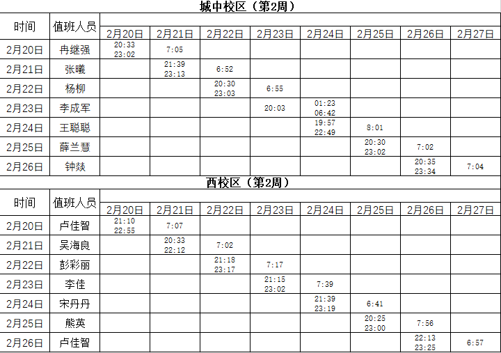 2022-2023学年第2学期第1-2周学工人员寝室值班通报