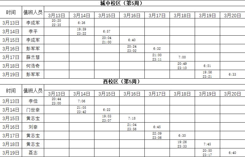 2022-2023学年第2学期第5周学工人员寝室值班通报