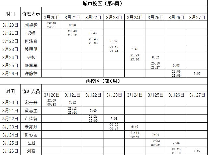 2022-2023学年第2学期第6-7周学工人员寝室值班通报