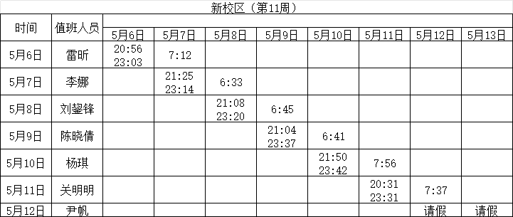 2023-2024学年第二学期第11-12周学工人员寝室值班通报