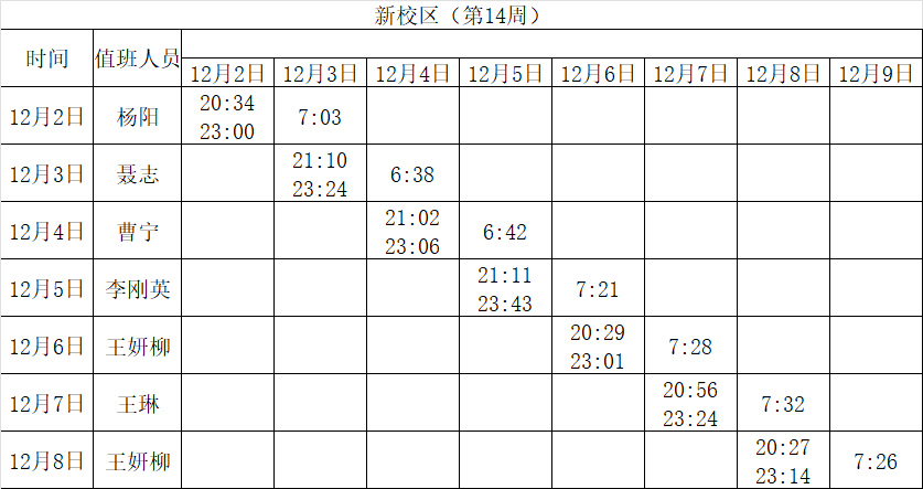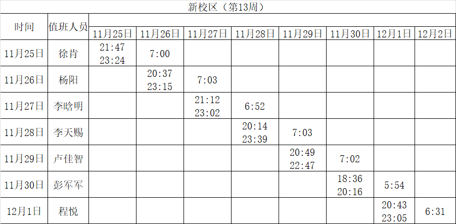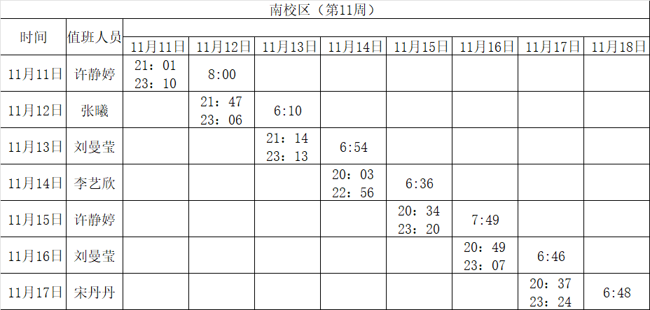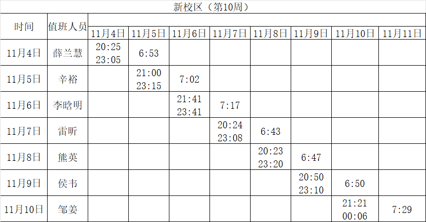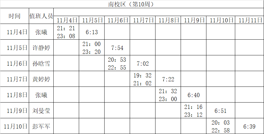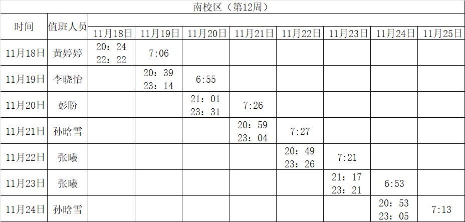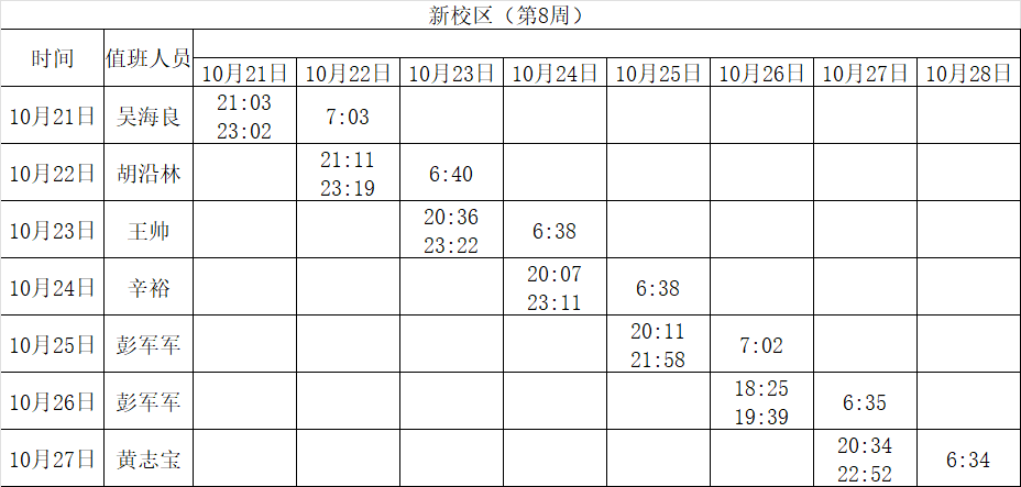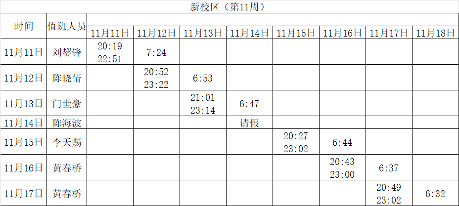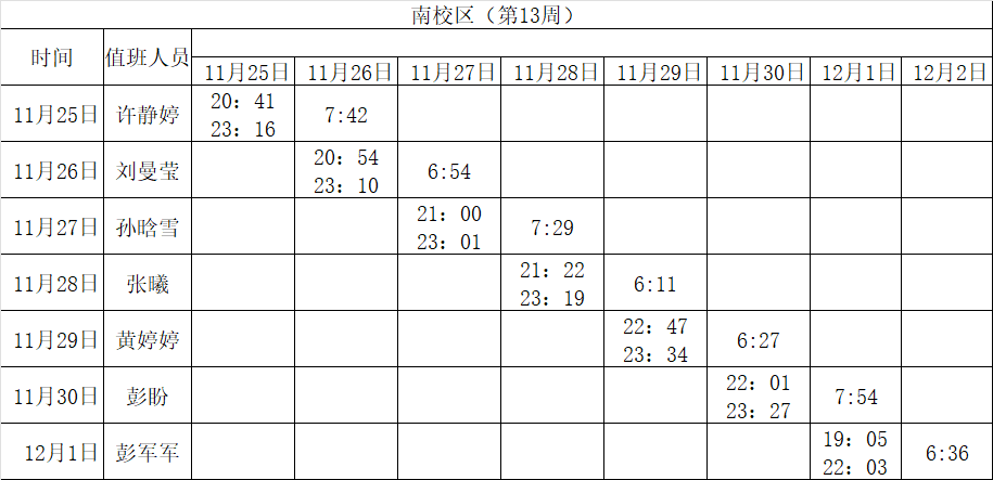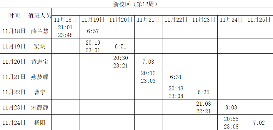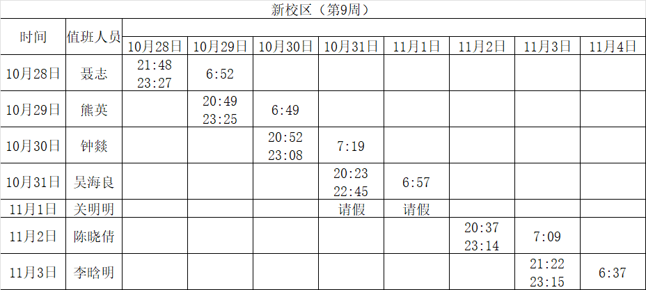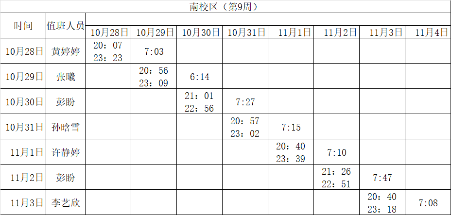 2024-2025学年第一学期第8-14周学工人员寝室值班通报