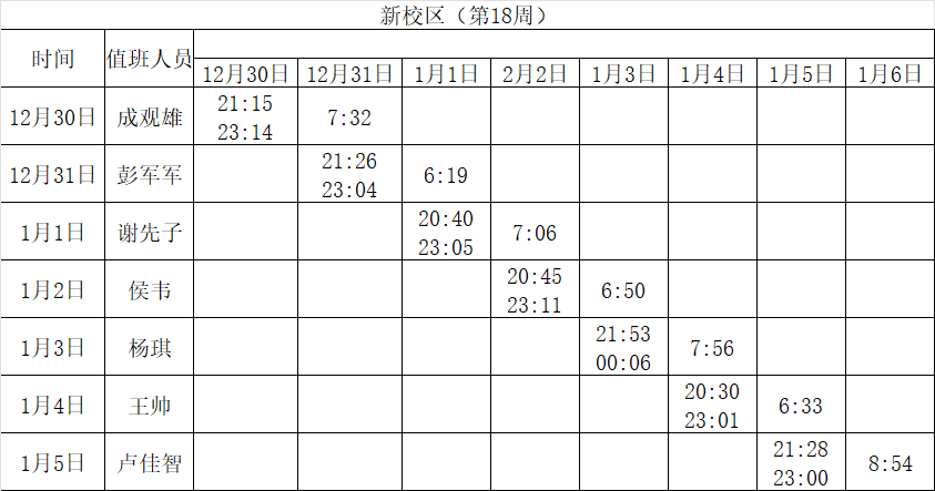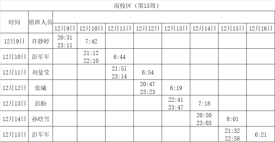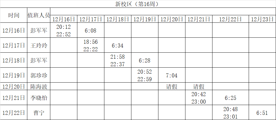 2024-2025学年第一学期第15-18周学工人员寝室值班通报