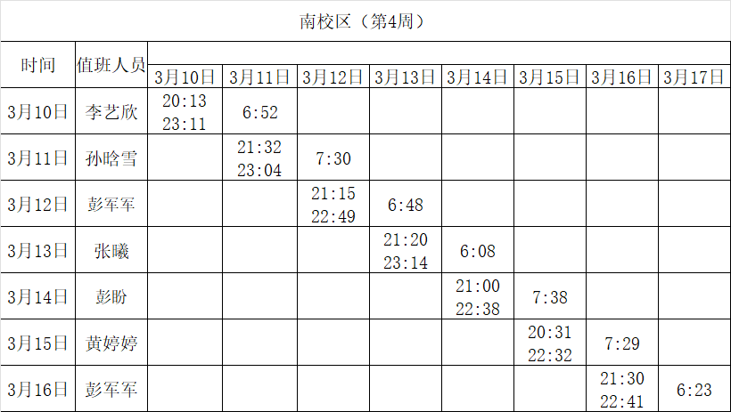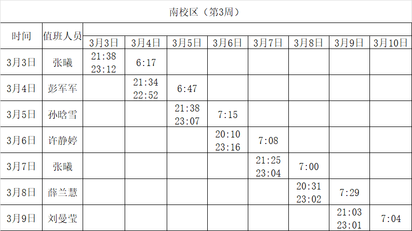 2024-2025学年第二学期第3-4周学工人员寝室值班通报