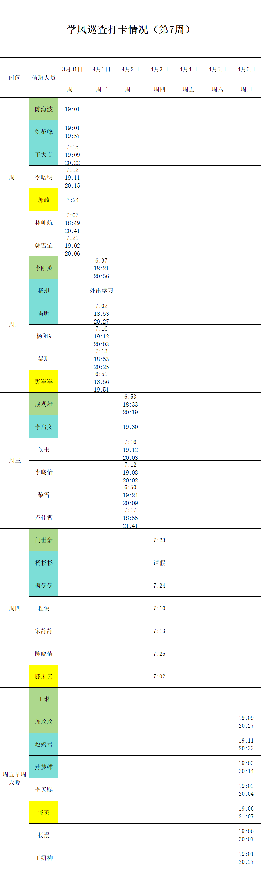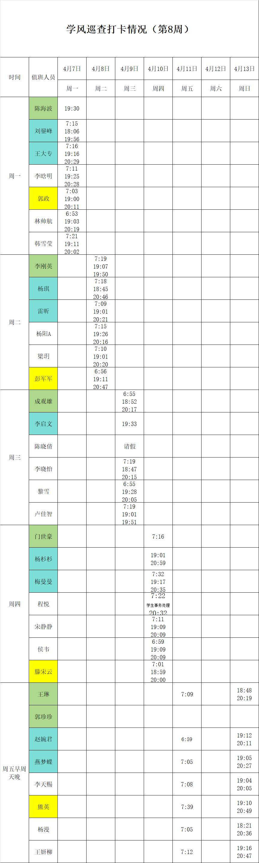 2024-2025学年第二学期第7-8周学风巡查打卡情况公示