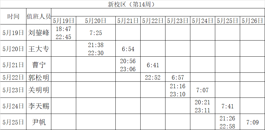 2024-2025学年第二学期第13-14周学工人员寝室值班通报