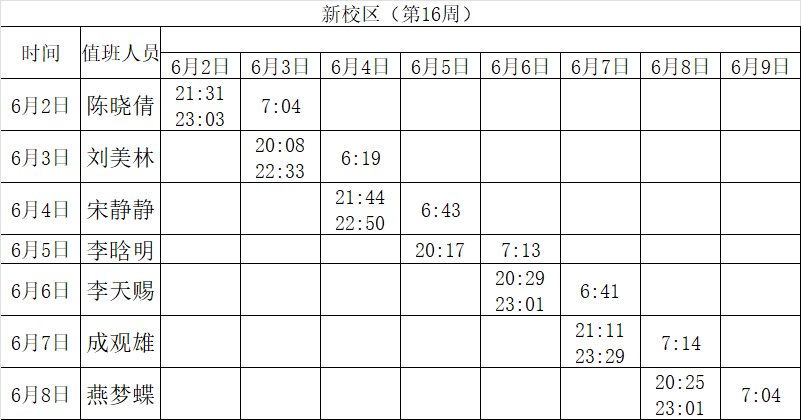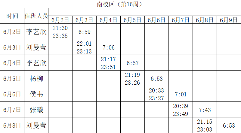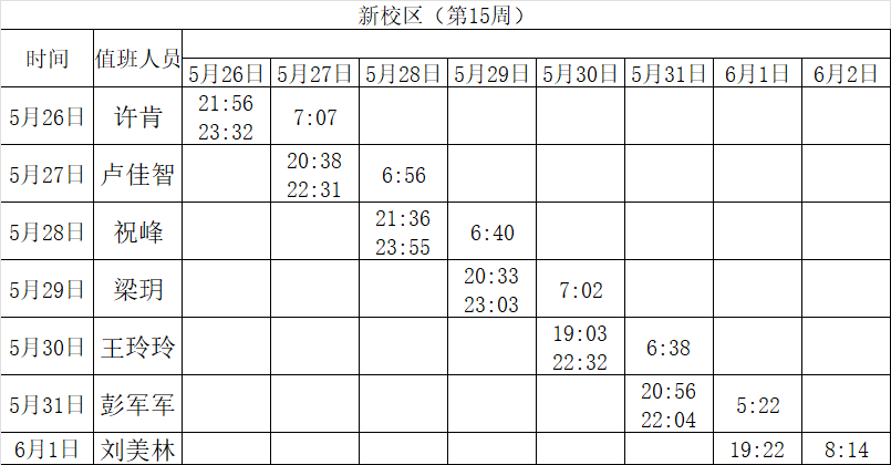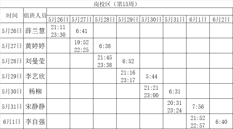 2024-2025学年第二学期第15-16周学工人员寝室值班通报