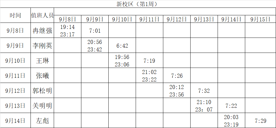 2025-2026学年第一学期第1-2周学工人员寝室值班通报
