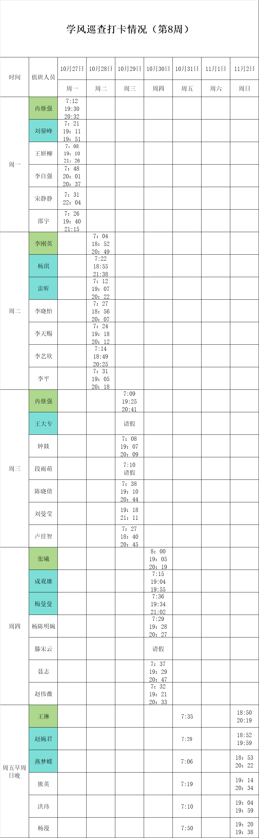 2025-2026学年第一学期第7-8周学风巡查打卡情况公示