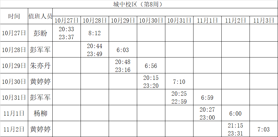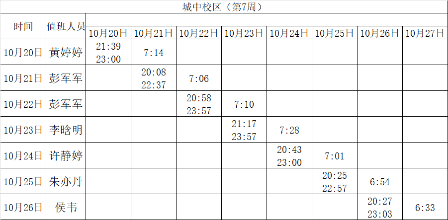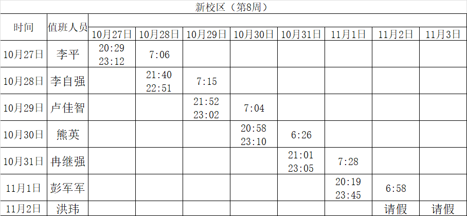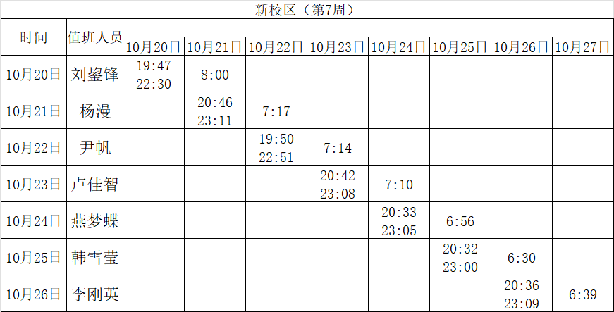 2025-2026学年第一学期第7-8周学工人员寝室值班通报