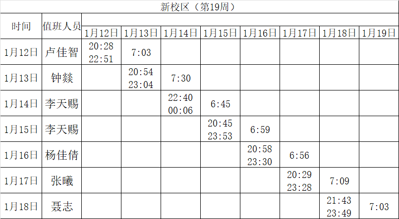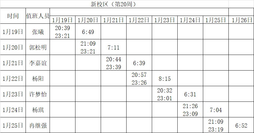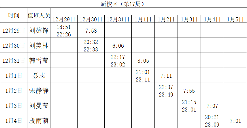 2025-2026学年第一学期第17-20周学工人员寝室值班通报