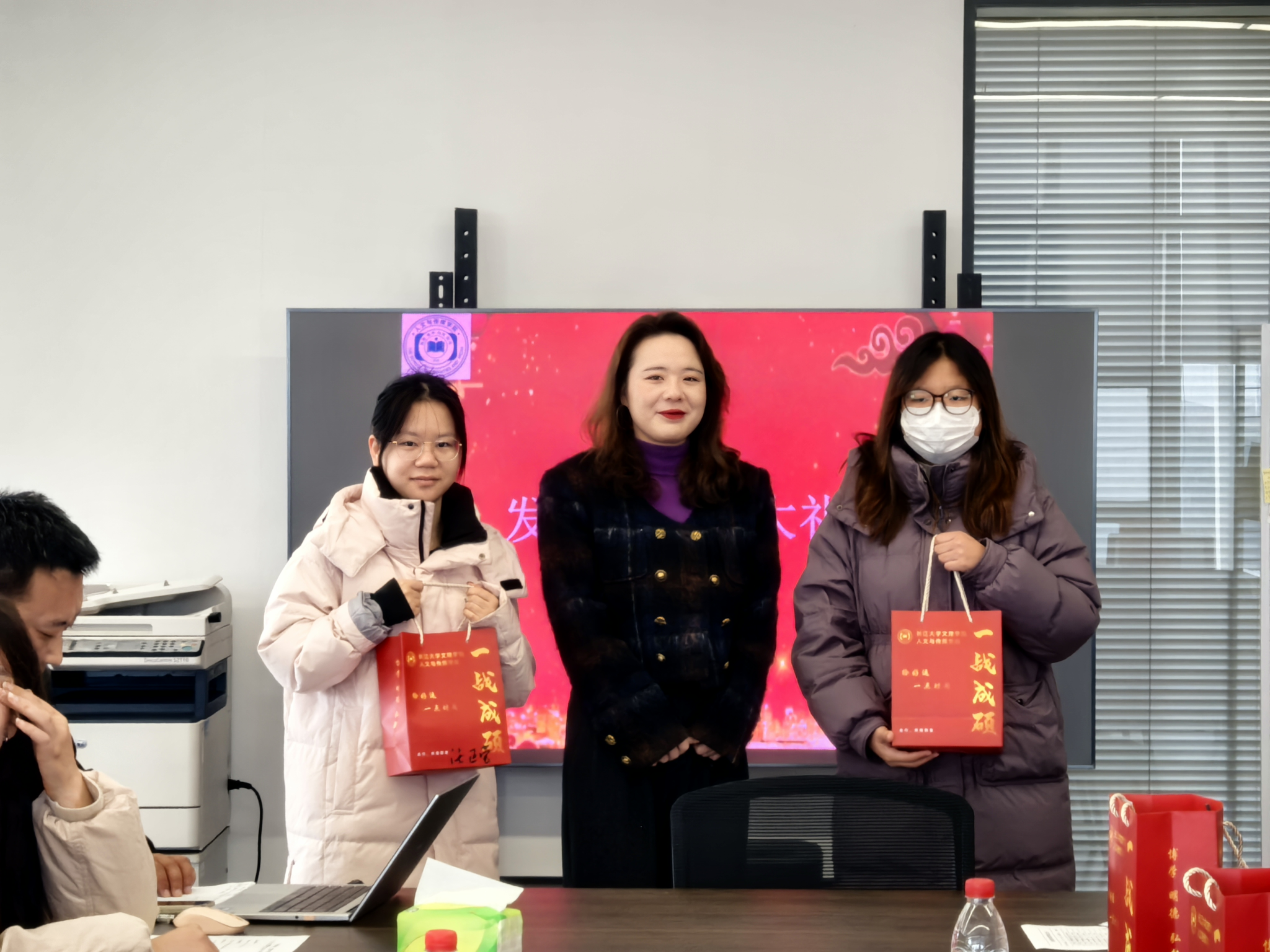 现场温馨洋溢,公司领导、老师为考研员工代表送上了精心策划、满载心意的“考研加油包”。每一份礼包都凝聚着公司的细致关怀:既有承载师长殷殷叮嘱的手写祝福信,为学子注入精神动力;也备齐了考试必备文具,提供坚实的物质支持。几片暖宝宝,恰似无声的陪伴,驱散严寒;一份份能量零食,寓意着续航与补给。而特别准备的“柿柿如意”挂件,更以谐音巧思,寄托着对学子前程似锦、心想事成的美好祝愿。每一件物品的挑选与组合,无不体现着公司在细节之处的温暖与用心。
