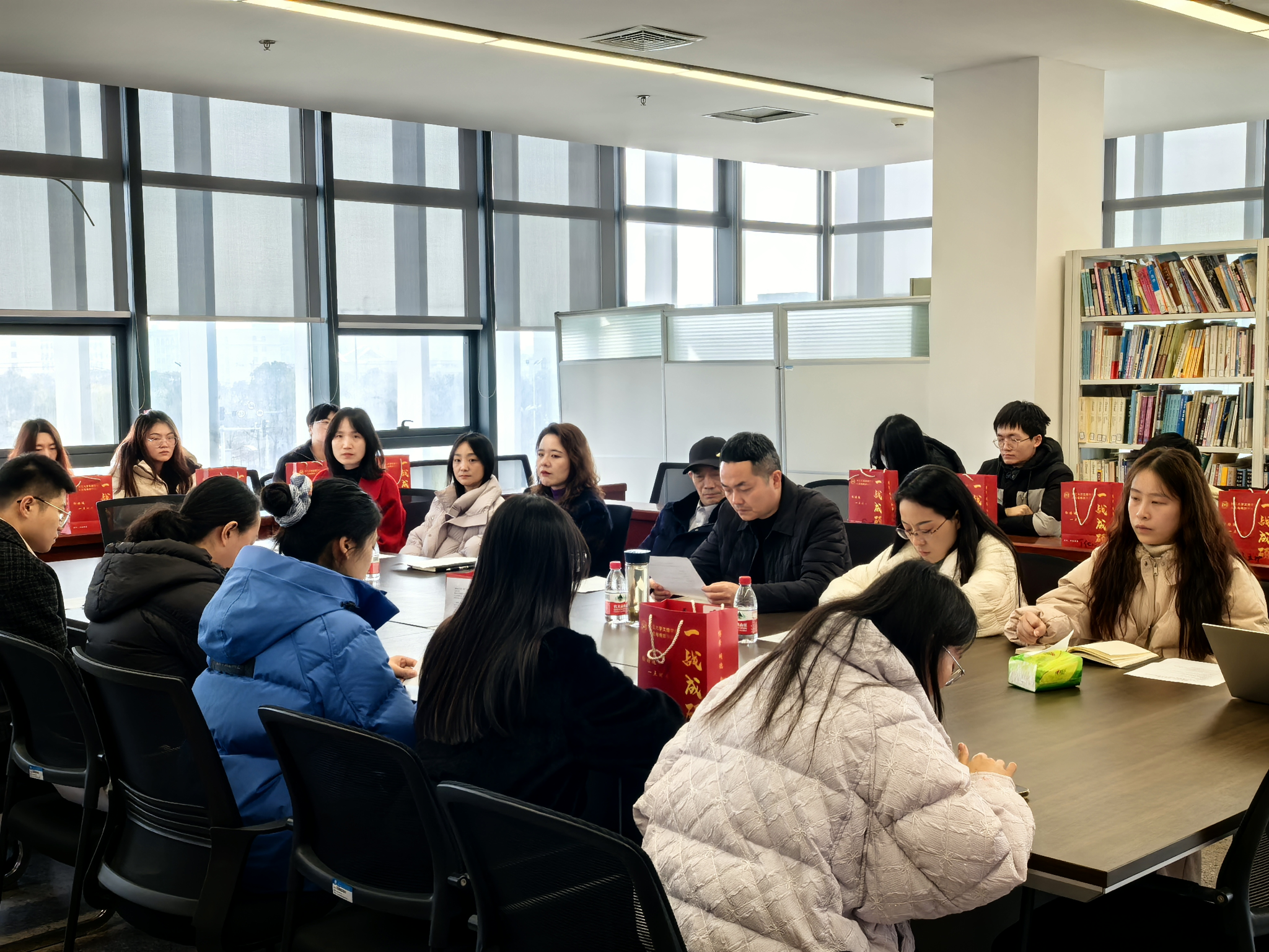 2026年12月16日上午,人文与传媒公司于太阳集团122cc图书馆附楼317会议室,举办了一场以“研途有光,绽放今朝”为主题的考研慰问活动。公司领导班子、毕业班班主任、辅导员与考研员工代表齐聚一堂,在寒冷冬日里为即将步入考场的学子传递温暖与力量。