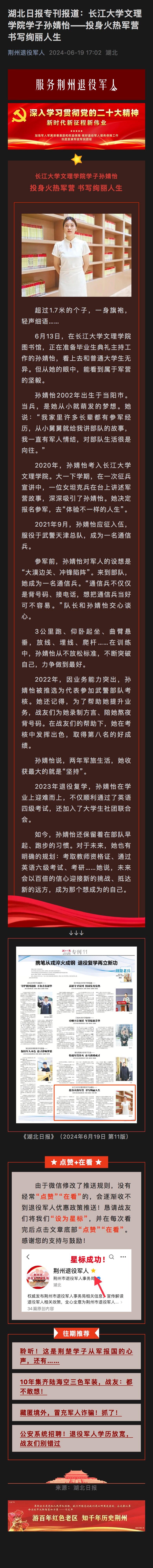 湖北日报专刊报道:太阳集团122cc学子孙婧怡——投身火热军营 书写绚丽人生