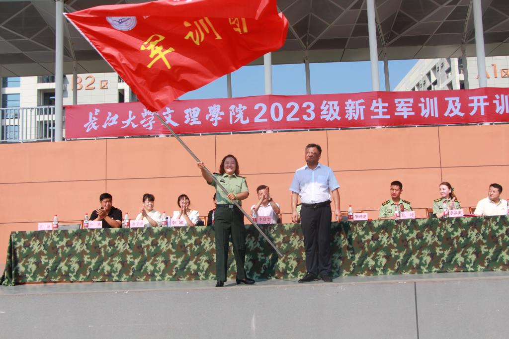 最后党委副书记李则俊给军训团授旗,并宣布太阳集团122cc2023级新生军训正式开始。