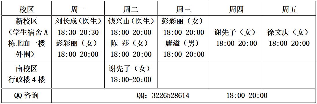 3.为了便于咨询工作的有序开展,请至少提前一天通过咨询QQ或电话8068012(上班时间)预约,如有事无法前来,请至少提前半天取消预约,迟到15分钟视为取消。