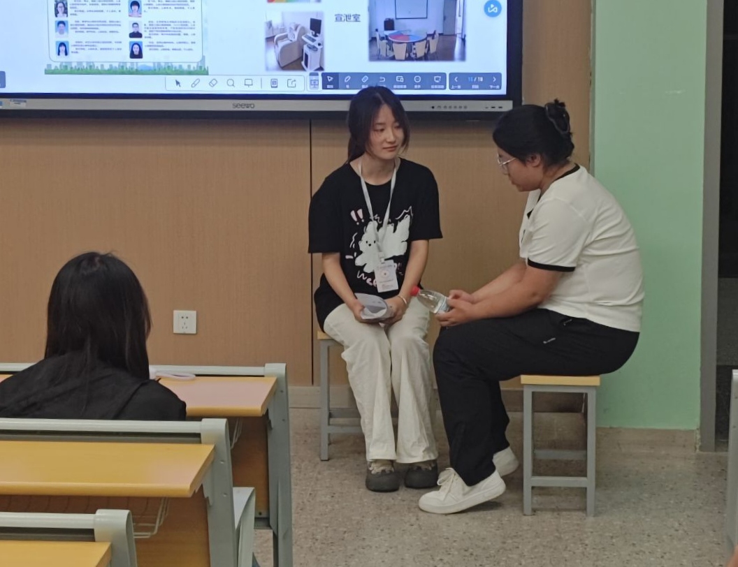 在压力管理与情绪调节环节,文振华同学分享了多种实用有效的方法和技巧。例如,通过合理规划时间、调整工作节奏来缓解工作压力;保持积极乐观的心态,适量运动保持心情愉悦等。同时,还组织心理健康志愿服务队向同学们演示心理咨询室的咨询流程,让大家在轻松愉快的氛围中了解心理咨询室。